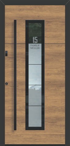 Besonders gefragt sind die Modelle mit hohem Glasanteil und Sprossendesign, die viel Tageslicht einlassen und gleichzeitig elegante Akzente setzen. Wählen Sie aus einer Vielzahl an Ornamentgläsern für Ihre individuelle Gestaltung. Ein besonderes Highlight: Ihre Hausnummer oder Ihr Familienname können direkt ins Glas integriert werden – entweder im Türblatt oder im optionalen Seitenteil.